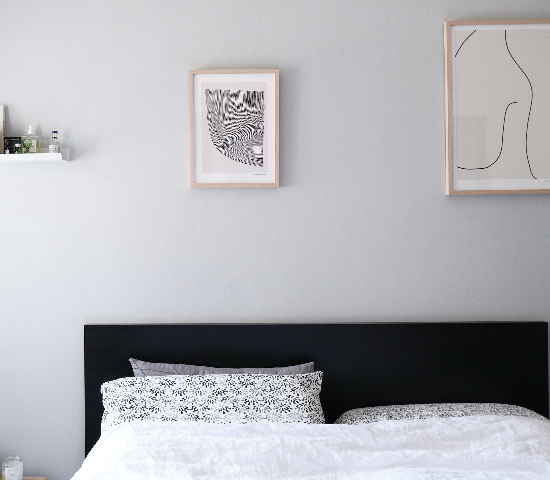 最先有明確想法的空間是客廳跟飯廳,反倒臥室我是腦中一片空白,最後選的床跟窗簾我都不太滿意,而床面跟窗面都草率決定的後果就是我一直很不滿意我們家的臥室。直到前陣子才掛上喜歡的畫、換上純白的床單,終於可以算得上是舒服的。