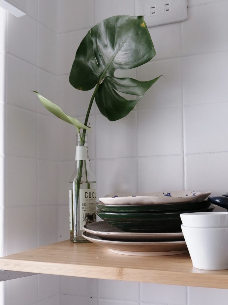 因為之前租屋時已經買的IKEA置物架不想浪費,我們就試著用矽利康黏著固定,但是有些置物架還是會掉落(我們黏三個掉了兩個😅 )