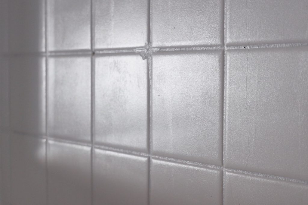 - 填補磁磚破損坑洞、裂縫,盡可能讓磁磚表面是平滑的,我們是用矽利康填補。