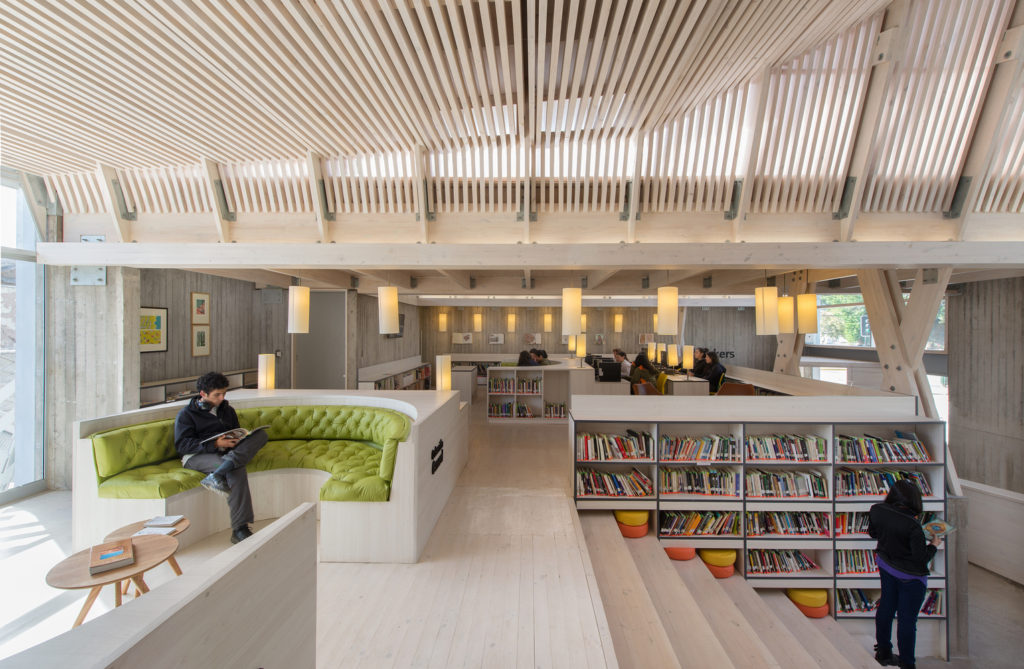 其中一個社區重建項目Biblioteca Municipal de Constitucion(Public Library of Constitucion) ,也就是孔斯蒂圖西翁公共圖書館,由智利當代建築師Sebastián Irarrazaval負責該重建計畫,讓人們看見同樣是在有限的建築面積與預算內,提供完整性功能之外,卻依然清晰可見該圖書館經思量後的友善使用者及永續設計。我猜應該是跟重建基金會是私募基金,以及基金會主持人跟當地木業公司的良好關係等因素有關。