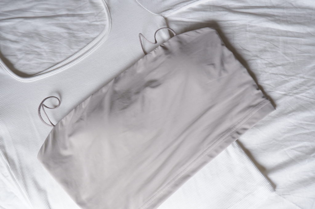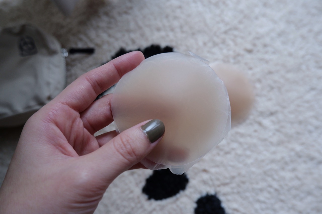 胸貼是最近才入手 STUDIO DOE by DOE – INMOST極薄親膚隱形胸貼。材質親膚、黏性很足,我之前貼過別家一整天下來會有點刺癢,但這款完全不會刺癢;胸貼本身非常薄,所以連邊緣也可以貼合很好,但缺點也是因為非常薄,幾乎沒辦法修飾胸型,側面看胸部還是會覺得有些害羞。